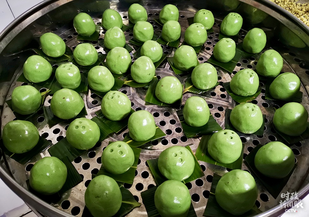 △在江浙地區(qū),每年吃第一口青團(tuán),叫“嘗春”。(總臺(tái)央視記者張曉鵬拍攝)