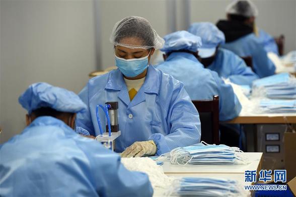合肥迅達包裝股份有限公司的工人在口罩生產(chǎn)車間工作(3月17日攝)。新華社發(fā)(周牧 攝)