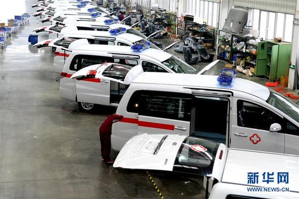 工作人員在江淮汽車商務(wù)車公司改裝救護車(2月25日攝)。新華社發(fā)(黃博涵 攝)