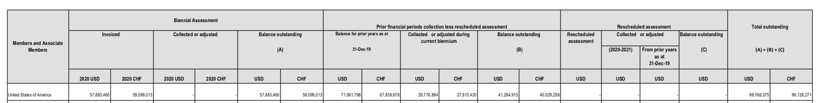 △世衛組織會員國分攤會費概覽(截至2020年3月31日)部分截圖(來源:世衛組織官網)