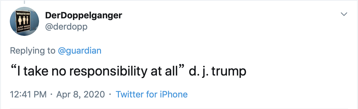 網民:“特朗普:‘我不承擔任何責任。’”↓↓↓