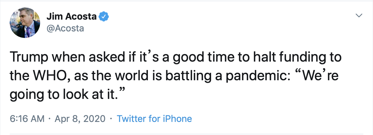 網民:“全球都在抗疫,此時被問及是否是暫停繳納會費的好時機時,特朗普說:‘我們正在考慮。’”↓↓↓