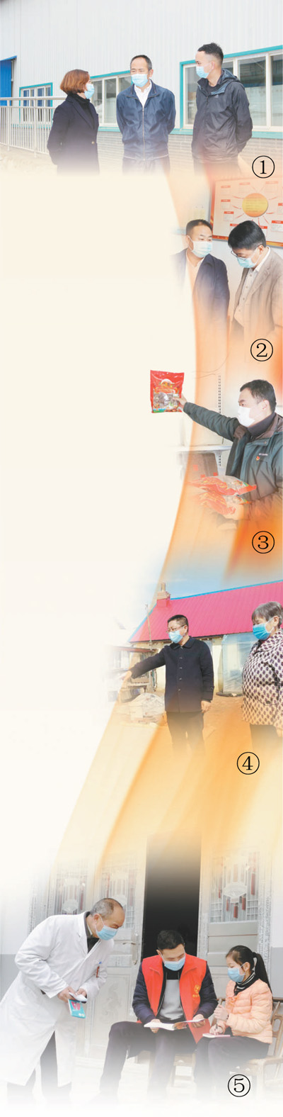 圖①:許云華(中)調(diào)研扶貧企業(yè)復(fù)工情況。