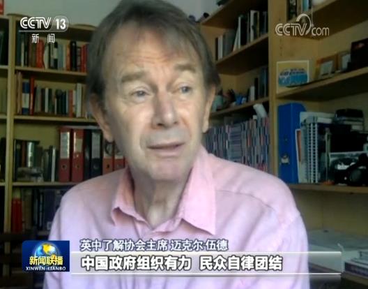 英中了解協會主席 邁克爾·伍德:中國政府組織有力,民眾自律團結,疫情防控形勢持續向好。我堅信,特別是現在,互相理解、合作、對話是最重要的。我們致力于英中之間的合作,世界范圍內的合作也非常重要,現在的疫情只能通過國際合作來解決。
