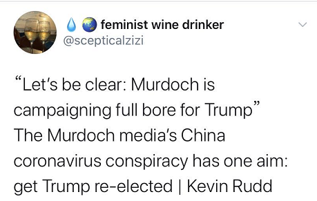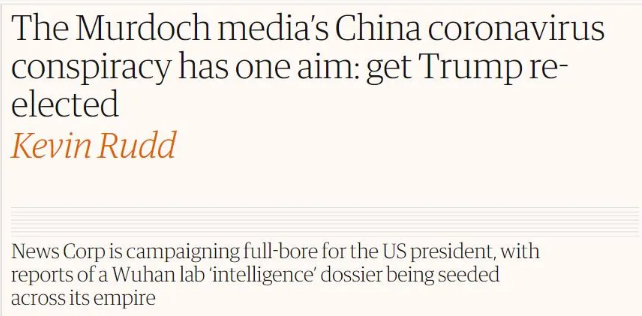 △陸克文撰文《默多克新聞集團關于中國的新冠病毒陰謀只有一個目的:讓特朗普連任》