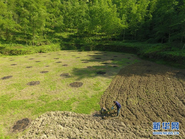 施六金在田間翻耕,為種水稻、養稻花魚作準備(4月24日無人機拍攝)。1973年出生于十八洞村的施六金,由于父親患病很早就放棄學業和母親扛起了家庭的重擔。為了生活,他還曾遠去東南亞打工。2015年,看到家鄉的變化,施六金回到村里開起了農家樂,年度家庭人均純收入也從2014年的1715元增長到了2019年的35696元。2018年,施六金與心愛的人組建了家庭。今年初,施六金與愛人迎來了一個大胖小子。“做人做事要懂得回報和感恩。”施六金給剛出生的兒子取名施澤恩。新華社記者 薛宇舸 攝