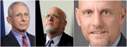 △安東尼·福奇(左)、羅伯特·雷德菲爾德(中)和斯蒂芬·哈恩(右)