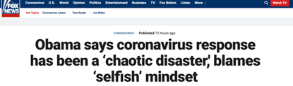奧巴馬:特朗普疫情應(yīng)對(duì)是“徹底混亂的災(zāi)難”
