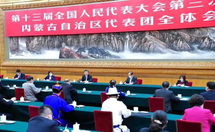 全國人大代表、錫林郭勒盟盟長霍照良告訴總書記,他們堅持生態優先、綠色發展,將全盟60%以上區域劃入生態保護紅線,不再在草原新上礦山開發項目。習近平表示肯定:“留在那,子孫后代可以用。”