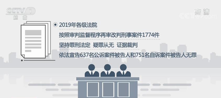 上一年各級法院,按照審判監(jiān)督程序再審改判刑事案件1774件,堅(jiān)持罪刑法定、疑罪從無、證據(jù)裁判,依法宣告637名公訴案件被告人和751名自訴案件被告人無罪。