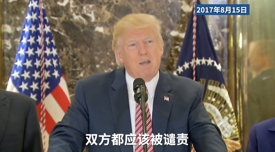 特朗普說,“當時有兩方人,一方是左派的。他們暴力地襲擊了右翼的游行人群。而媒體對右派團體的報道非常不公平,雙方都應該被譴責。”