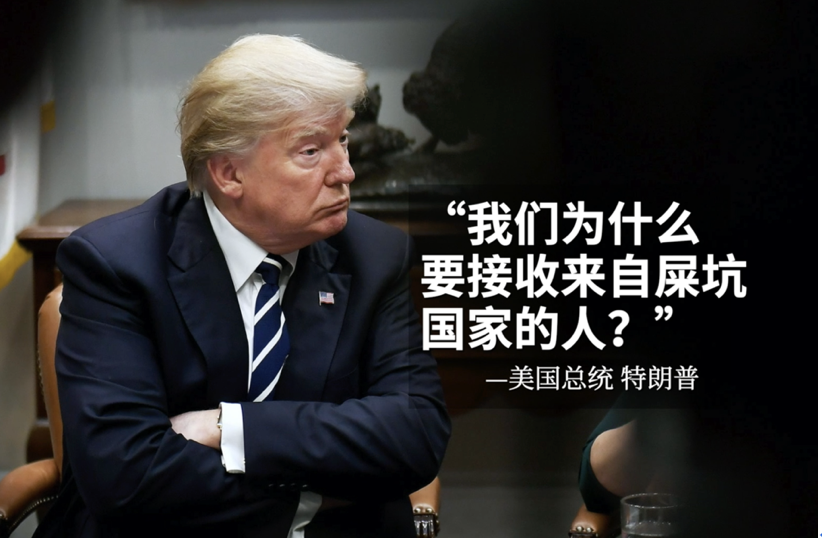 據《華盛頓郵報》報道,2018年1月11日,白宮在一場移民政策會議上,總統特朗普在提到海地、薩爾瓦多和部分非洲國家的移民時,竟然說“我們為什么接收來自屎坑國家(shithole countries)的人?