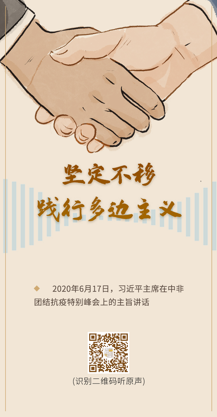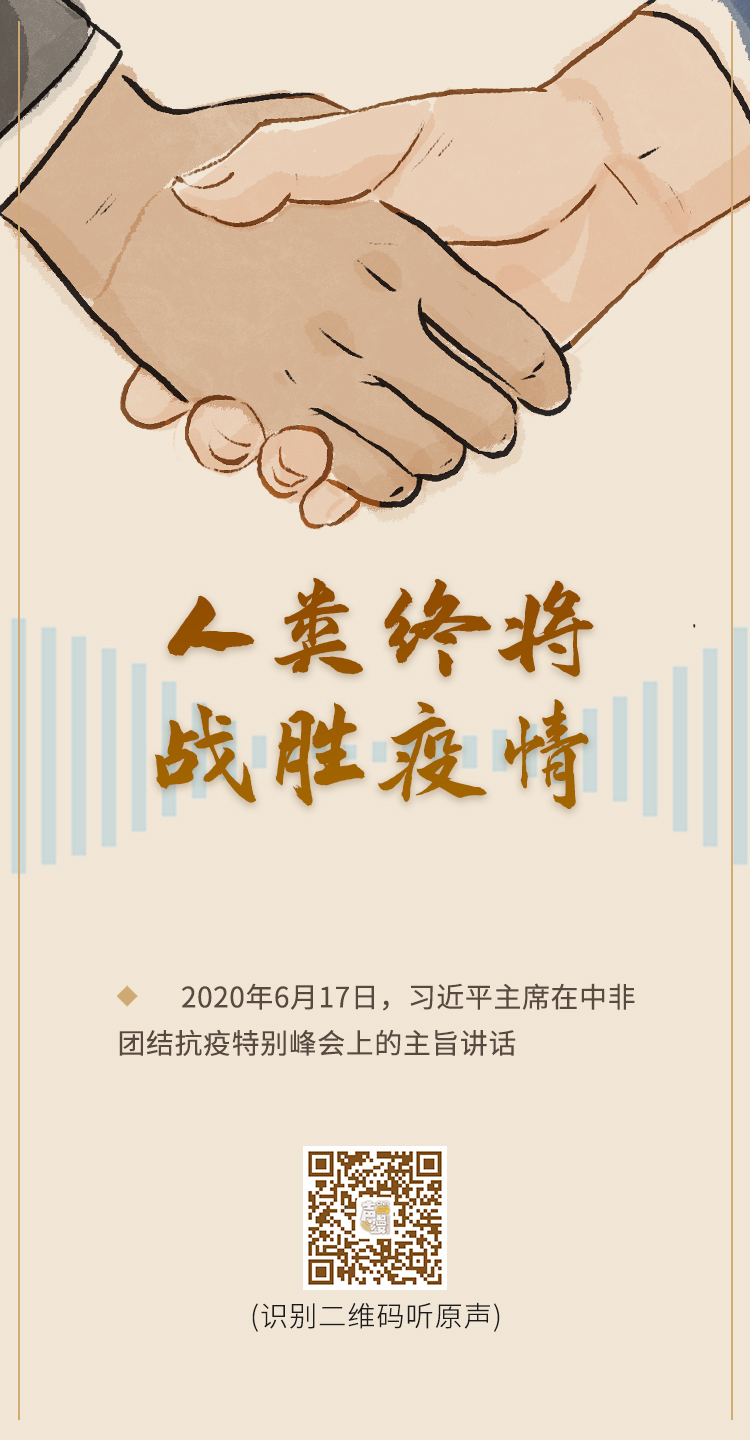 6月17日晚,習近平主席在北京主持中非團結抗疫特別峰會并發表題為《團結抗疫 共克時艱》的主旨講話。