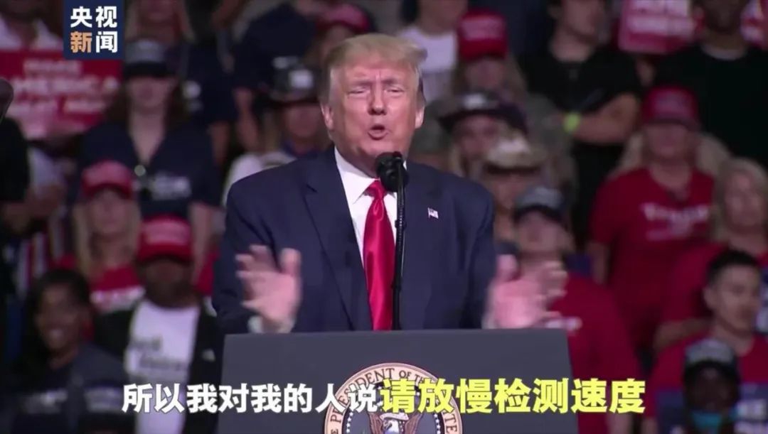 關(guān)于病毒檢測工作,特朗普上周末在疫情以來的首場競選集會上宣稱加大檢測力度是美國確診病例排在全球第一的原因,所以應“放慢檢測速度”。他說:“新冠病毒的檢測是一把‘雙刃劍’,當你檢測了那么多人的時候,你會發(fā)現(xiàn)有更多的確診病例,所以我對我的人說,‘請放慢檢測速度吧’。”