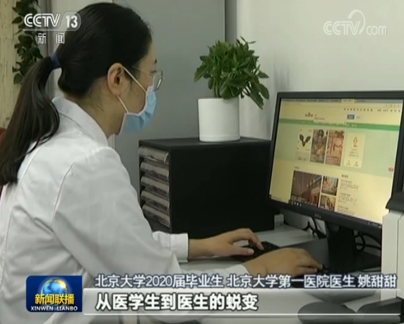 在北京大學醫(yī)學部2020屆畢業(yè)生這場特殊畢業(yè)典禮上,同學們身著白衣,重溫醫(yī)學生誓言。博士畢業(yè)生姚甜甜就是其中的一員,目前她已經(jīng)加入到北京大學第一醫(yī)院抗疫先鋒隊中,在感染科門診參與核酸檢測、在線解答新冠肺炎疫情困惑。