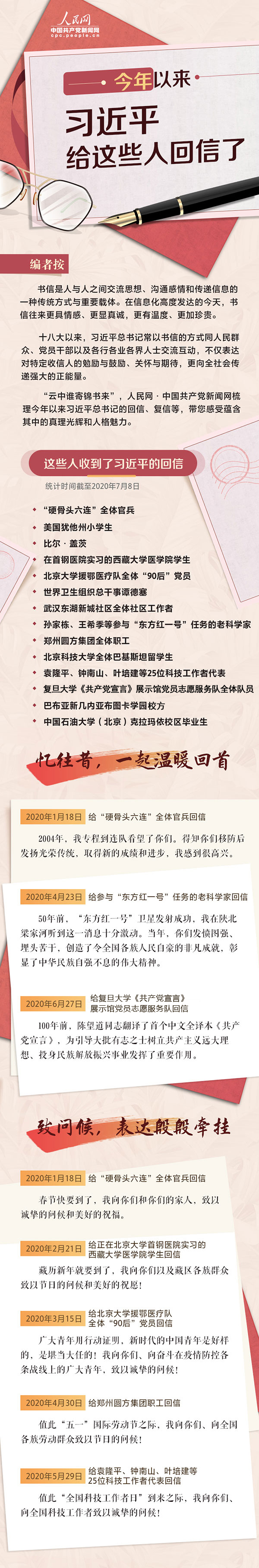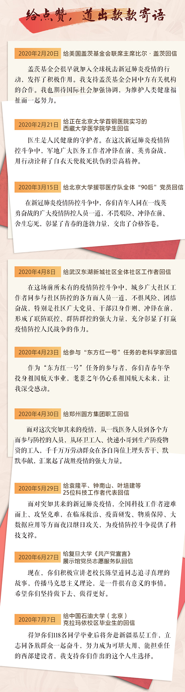 今天讓我們關(guān)注習(xí)近平今年以來的“回信”。