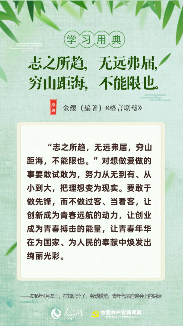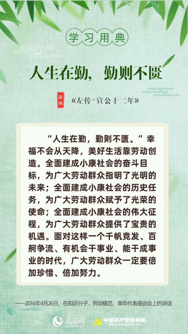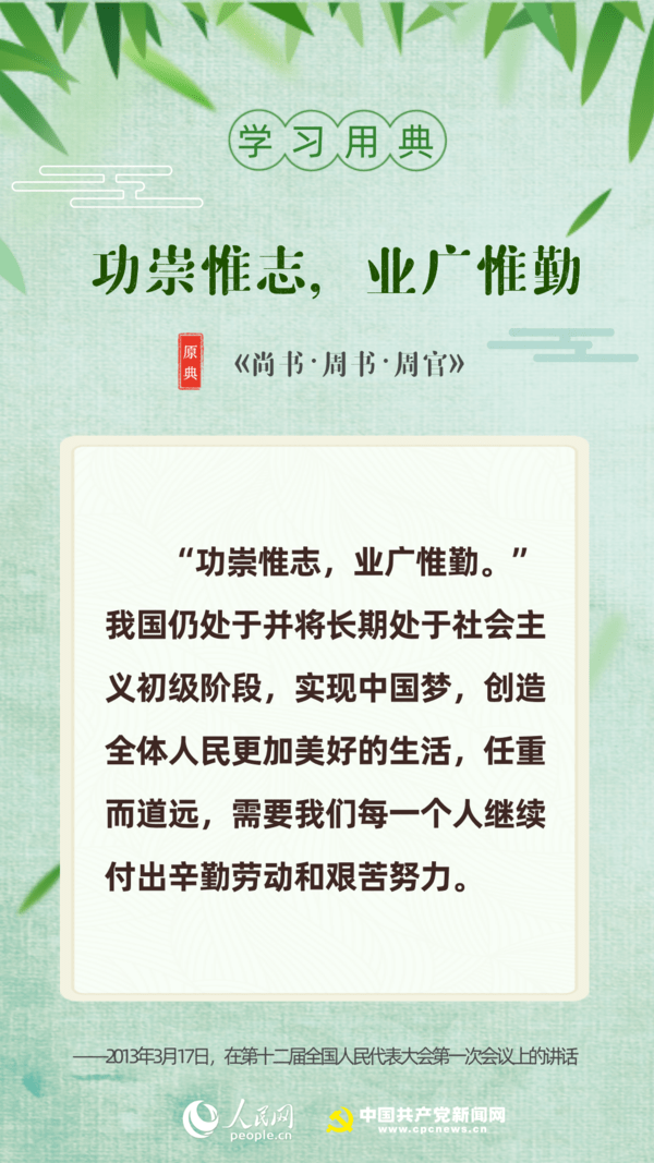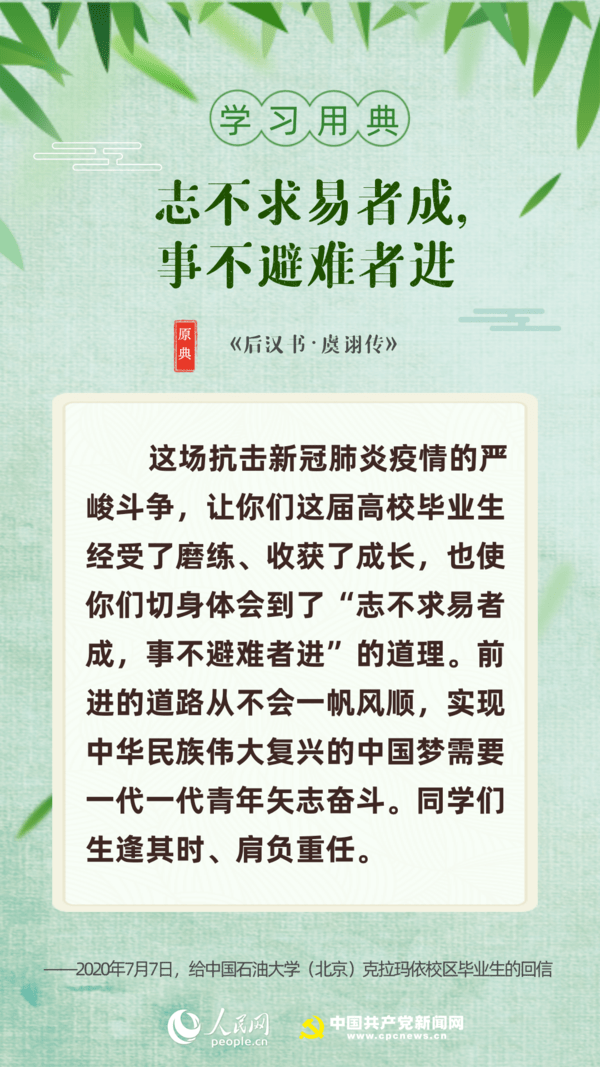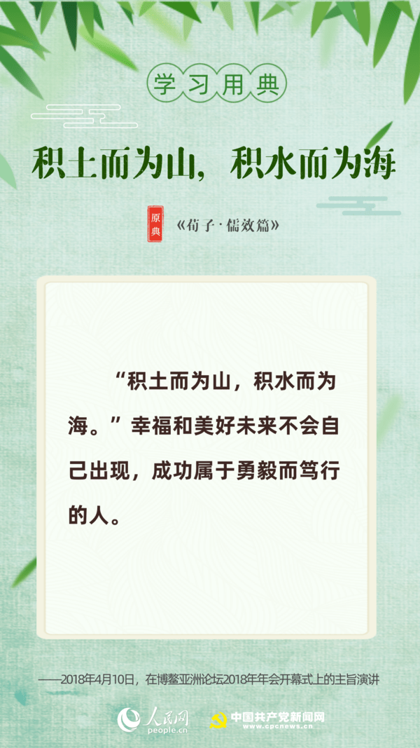 【編者按】“志不求易者成,事不避難者進。”近日,習近平總書記給中國石油大學(北京)克拉瑪依校區畢業生回信,對廣大高校畢業生提出殷切期望。“人生在勤,勤則不匱”“積土而為山,積水而為海”……近年來,習近平多次引用詩句典故,激勵包含廣大青年在內的全黨全國各族人民拼搏奮進、埋頭苦干。正值“戰疫”“戰貧”關鍵時刻,人民網·中國共產黨新聞網與您一起回顧習近平講話中關于“奮斗”的10個名句。