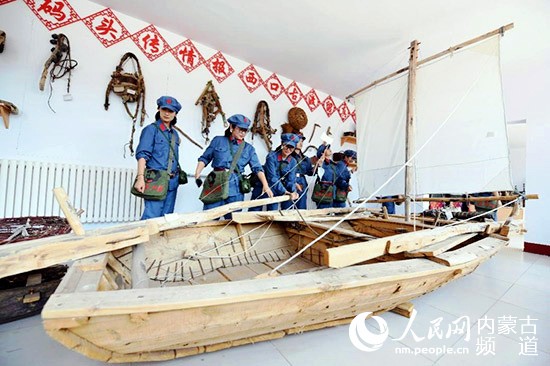 “同志們加把勁呀,嘿嘿呦哇……”一聲聲船工號子在山間回響。出生在上世紀(jì)20年代的老趙,如今已經(jīng)91歲高齡了。做了30多年的船工的他,回想起當(dāng)年拉船情形感慨萬千:“一個大船,長四丈二,寬兩丈多,可以拉6萬多斤貨,我們從巴盟(巴彥淖爾市)臨河出發(fā),收上糧食再拉到包頭,5個纖夫拉,需要拉一個月零三天!
