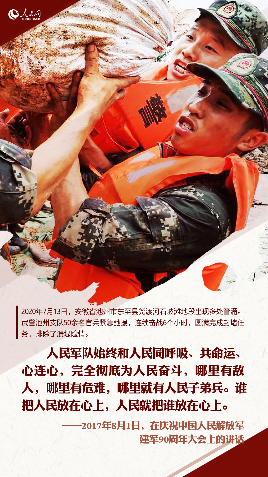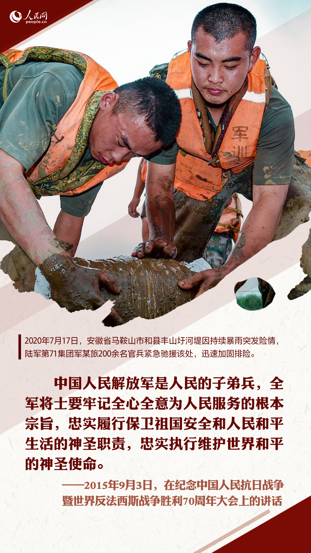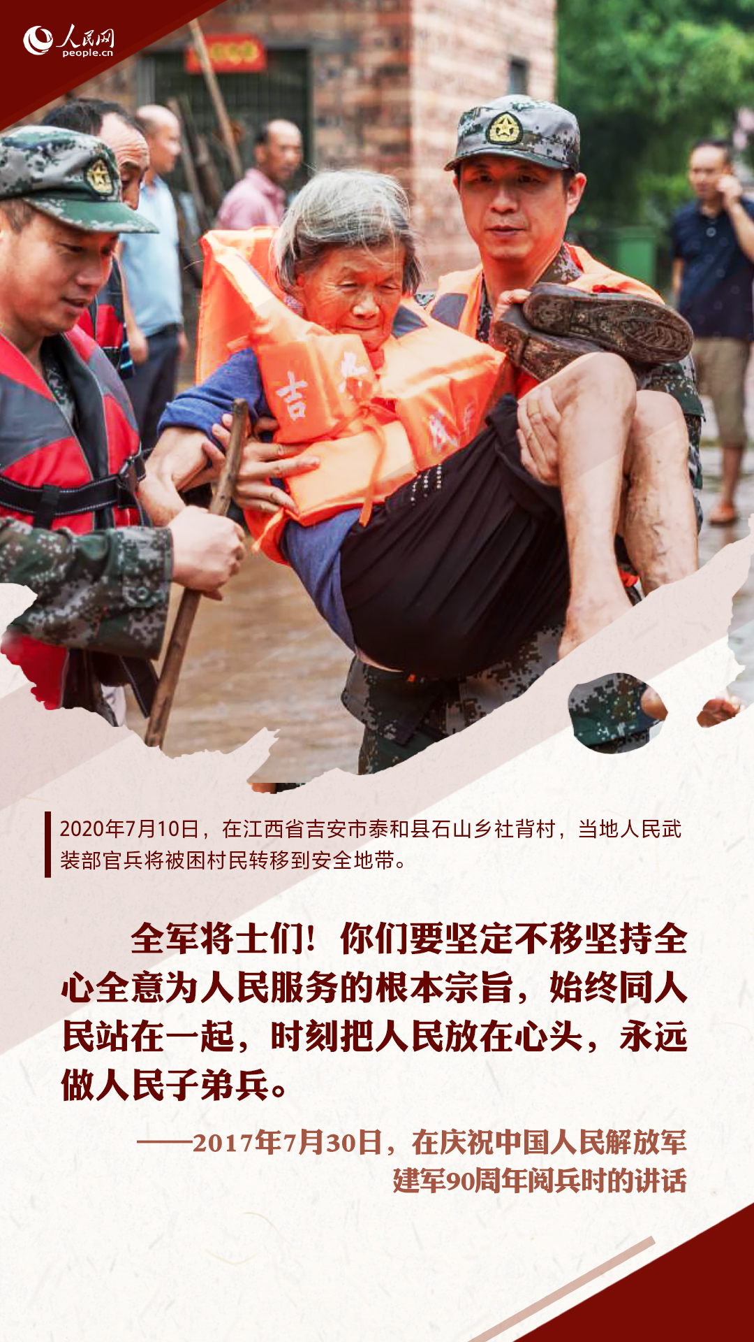 十八大以來(lái),習(xí)近平在多個(gè)重要場(chǎng)合囑托人民子弟兵要全心全意為人民服務(wù)。這些話語(yǔ),猶在耳畔,人民網(wǎng)圖解新聞制作一組海報(bào),重溫習(xí)近平的殷殷囑托,并致敬與洪水戰(zhàn)斗的人民子弟兵!