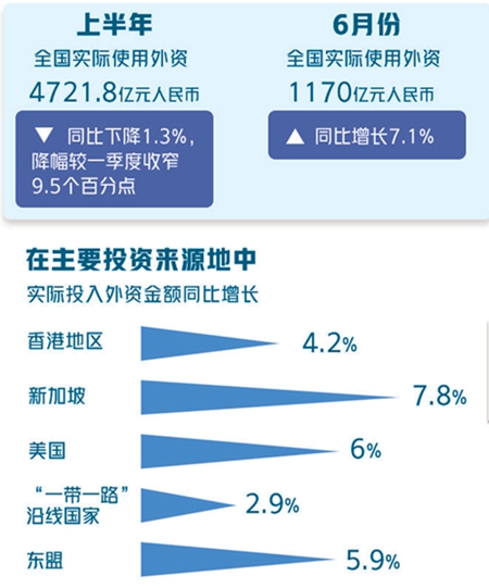 商務部數據顯示,今年二季度全國實際使用外資同比增長8.4%,較一季度下降10.8%出現回升明顯。多位專家學者和外企人士在接受經濟日報-中國經濟網記者采訪時表示,《外商投資法》營造了更加穩定、公平、透明、可預期的營商環境,有利于中國建設更高水平開放型經濟新體制。