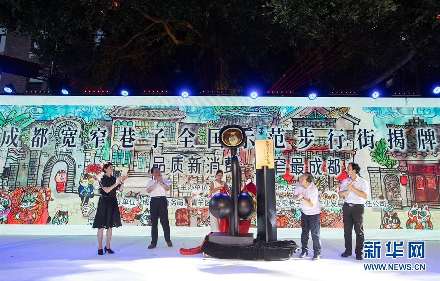 8月10日拍攝的成都寬窄巷子全國示范步行街揭牌儀式現場。 當日,成都寬窄巷子舉行了以“品質新消費 寬窄最成都”為主題的全國示范步行街揭牌儀式。 近日,南京夫子廟步行街、杭州湖濱步行街、重慶解放碑步行街、成都寬窄巷子步行街和西安大唐不夜城步行街被商務部確認為首批全國示范步行街。 新華社記者 江宏景 攝