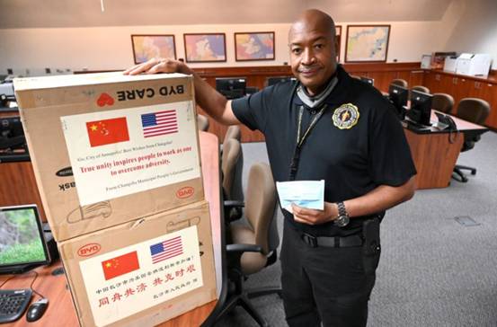 安納波利斯市市政執(zhí)行官戴維·賈雷爾在11日的新聞發(fā)布會(huì)上表示,來(lái)自中國(guó)長(zhǎng)沙的捐贈(zèng)最早從4月份開(kāi)始,當(dāng)時(shí)馬里蘭州正處于新冠疫情暴發(fā)初期,公共衛(wèi)生工作人員對(duì)醫(yī)用口罩的需求量非常大。