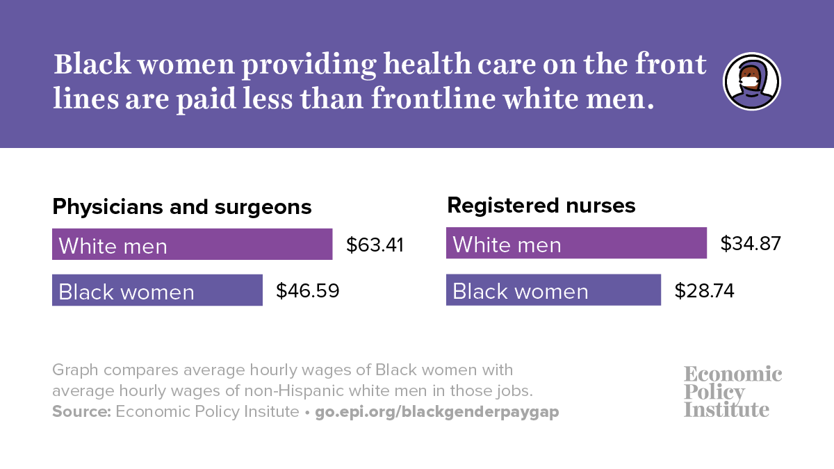 △身處抗疫一線的非洲裔女性醫(yī)生和護士,獲得的時薪少于白人男性 圖片來源:經濟政策研究所