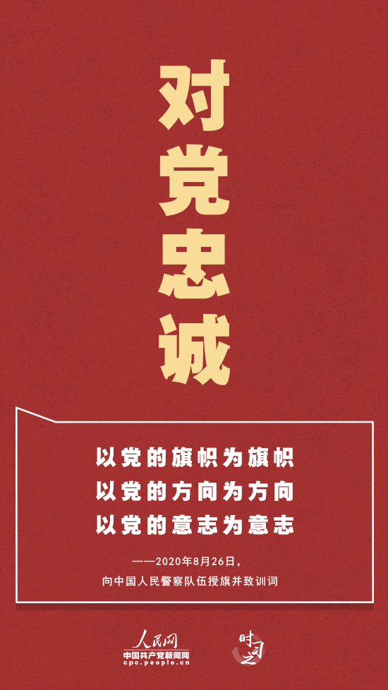 對黨忠誠——“堅定的理想信念是政法隊伍的政治靈魂。”紅色,是中國人民警察警旗的主色調,也是忠誠的顏色。對黨忠誠、聽黨指揮,是人民警察隊伍代代相傳的政治基因。新時代,人民警察隊伍要堅持黨的絕對領導,增強“四個意識”、堅定“四個自信”、做到“兩個維護”,確保絕對忠誠、絕對純潔、絕對可靠。