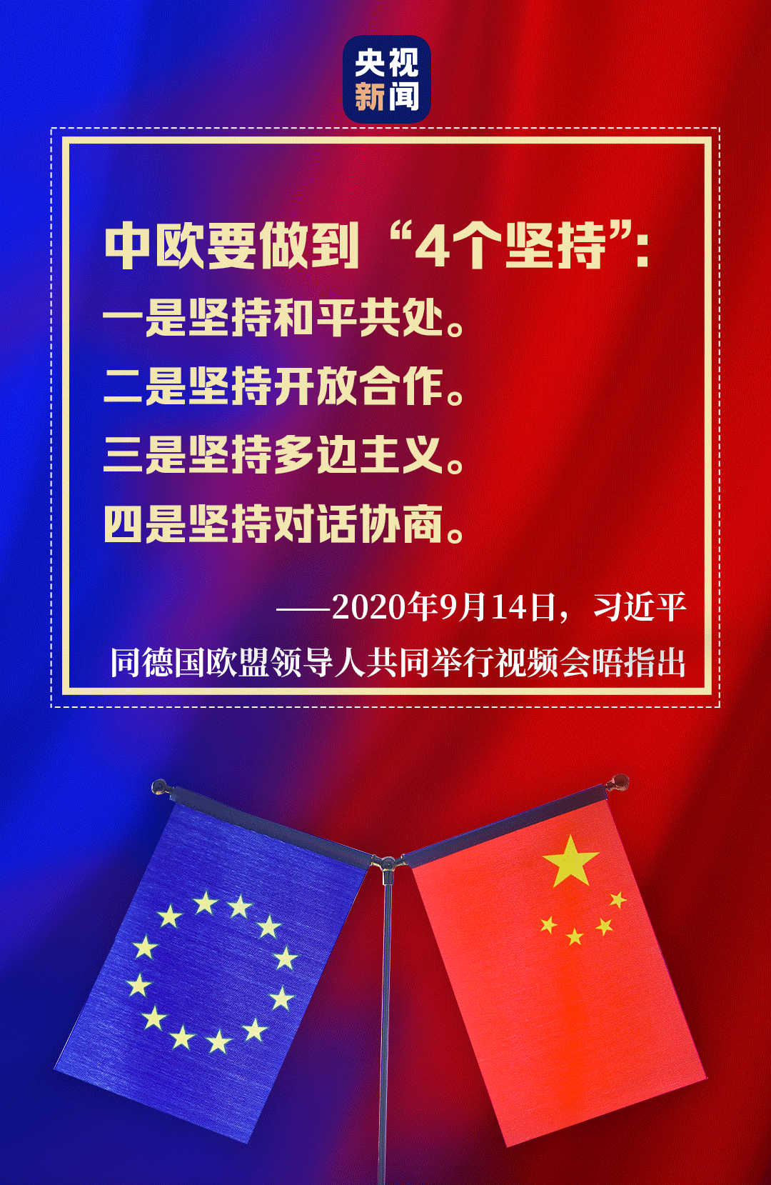 中歐相互尊重、求同存異、和而不同,不斷增進彼此理解和信任,在合作中擴大共同利益,在發展中破解難題。在當天的視頻會晤中,習近平強調,中歐要做到“4個堅持”。