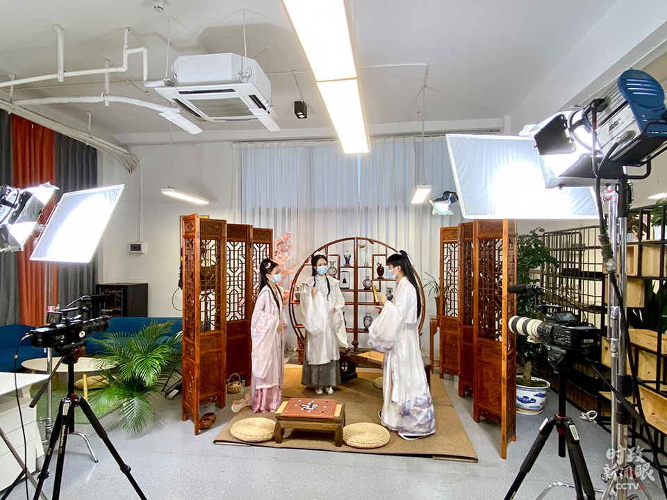 △馬欄山視頻文創園準備錄制漢服文化節目。(總臺央視記者郭曉龍拍攝)