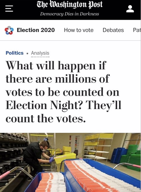《華盛頓郵報》指出,沒有州和地方的選務認證,大選就沒有正式完成,而疫情之下的選舉認證很可能將需要數周,但人們可能已經習慣了不必等待,“特朗普正是希望利用這個優勢”,“如果數百萬美國人真的同意特朗普的說法,認為不用等待計票就能得出選舉結果,那可能才是真正的災難”。