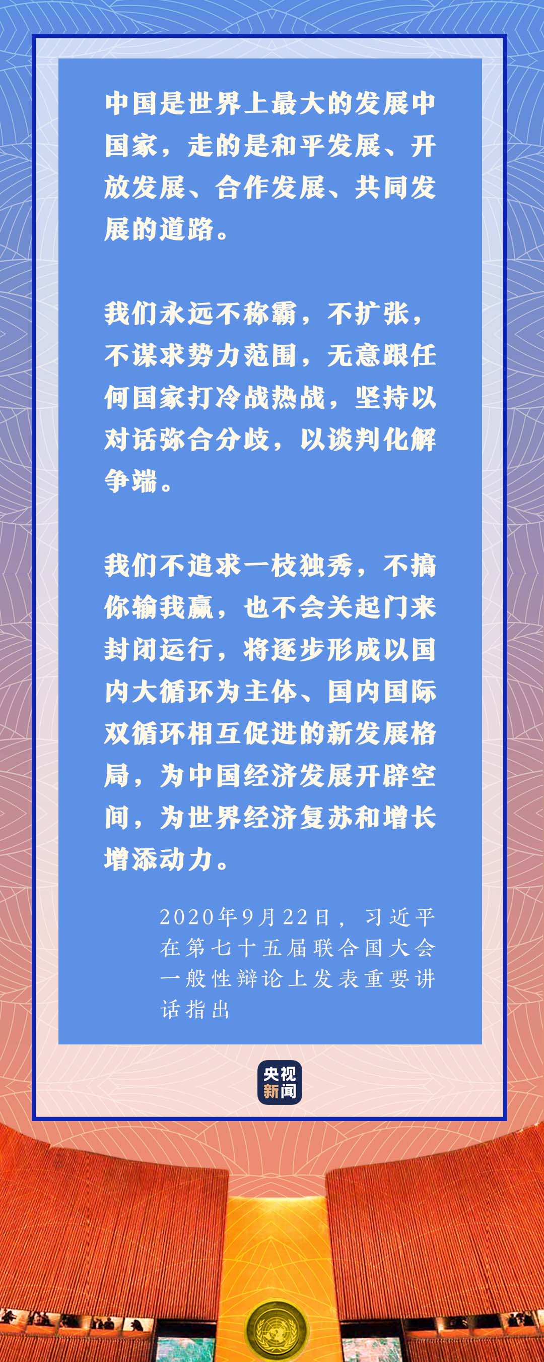 站在聯(lián)合國成立75周年的歷史新起點(diǎn),習(xí)近平主席的重要講話,把握時(shí)代大勢(shì)、彰顯中國智慧。中國方案將推動(dòng)構(gòu)建新型國際關(guān)系,推動(dòng)構(gòu)建人類命運(yùn)共同體,推動(dòng)創(chuàng)造世界更加美好的未來!