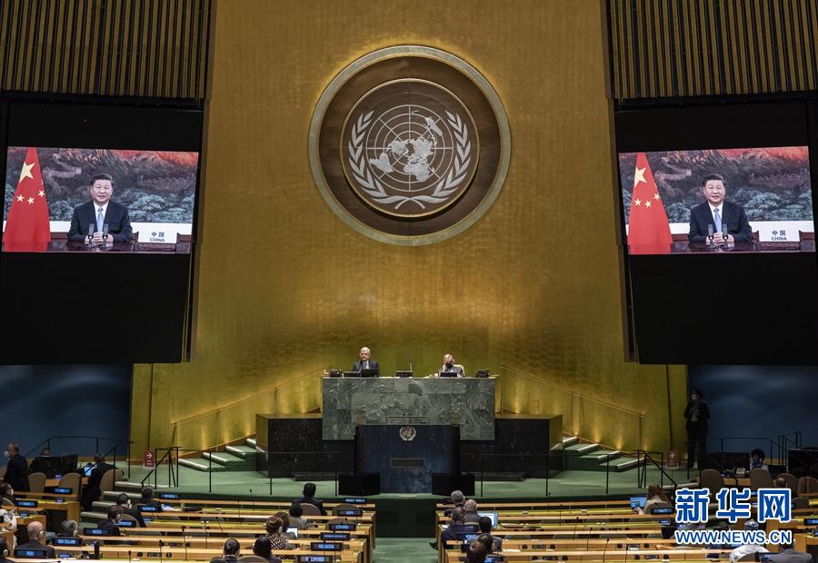9月22日,國家主席習近平在第七十五屆聯合國大會一般性辯論上發表重要講話。新華社發(聯合國供圖/埃瑟金德爾·德貝貝 攝)