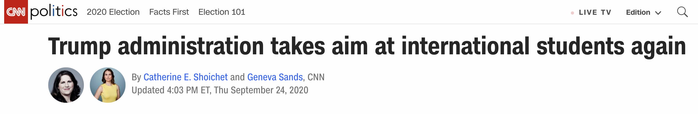 CNN報(bào)道稱,這并非特朗普政府首次拿留學(xué)生“開刀”。今年7月,美國政府曾出臺一項(xiàng)涉留學(xué)生簽證的新規(guī),稱不會給在秋季學(xué)期僅上網(wǎng)課的留學(xué)生發(fā)放簽證,也將不允許這些學(xué)生進(jìn)入美國。