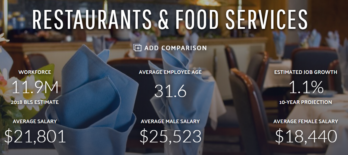 △美國(guó)餐飲業(yè)男性平均工資約為2.5萬(wàn)美元,制造業(yè)男性平均工資為6.8萬(wàn)美元