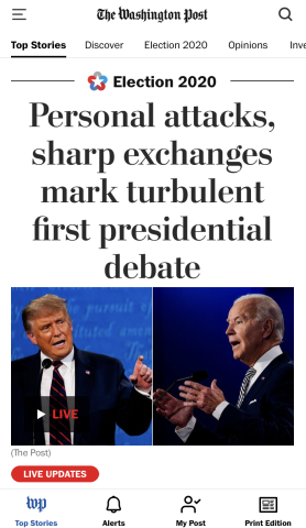 《華盛頓郵報》稱,美國大選首場辯論中充斥著人身攻擊