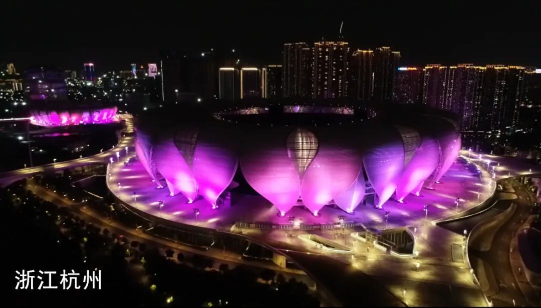 杭州錢塘燈光泛起,“大小蓮花”玉立