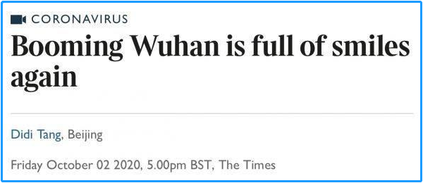 英國《泰晤士報》網站于10月2日發表的題為《蓬勃發展的武漢再次充滿歡聲笑語》的報道表示,國慶來臨,在武漢出現新冠肺炎疫情半年多后,這座城市再度充滿了活力。