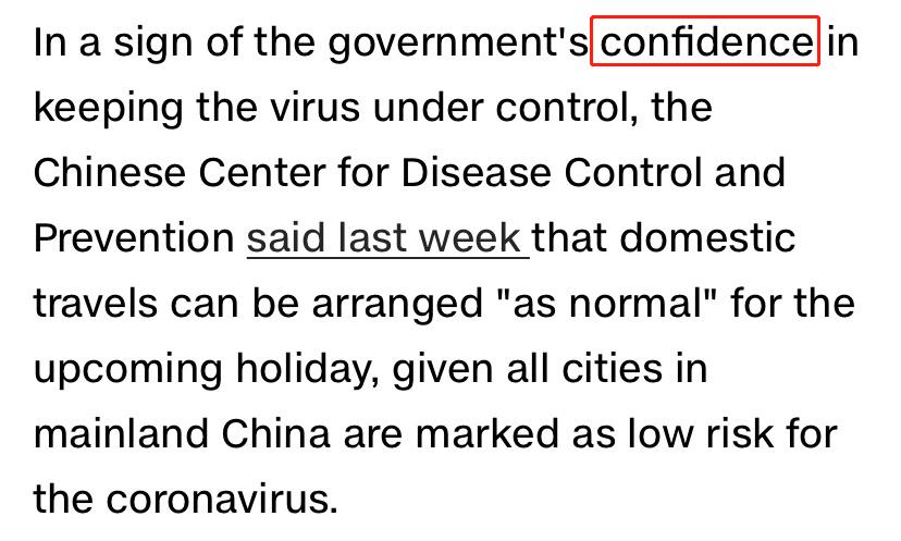 CNN認為,中國人民得以在黃金周出門度假的前提是“中國控制住了疫情”。