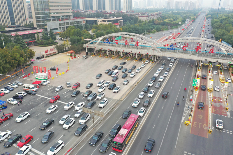 車輛在S9902新元高速石家莊裕華路口通行(10月8日攝,無人機照片)。新華社記者 朱旭東 攝