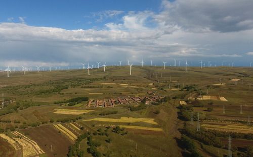 這是河北省張家口市張北縣大河鄉(xiāng)一處風(fēng)電場(9月15日攝,無人機(jī)照片)。新華社記者 楊世堯 攝
