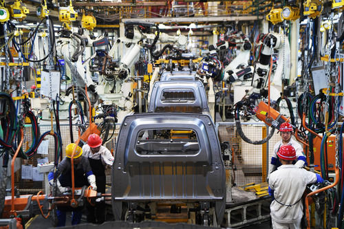 工作人員在位于重慶萬州的長安跨越智能化生產(chǎn)車間內(nèi)作業(yè)(9月23日攝)。新華社記者 王全超 攝