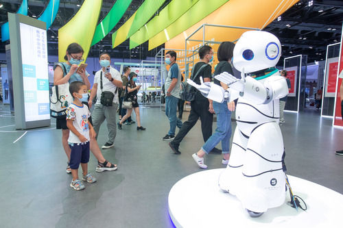 觀眾在2020年中國國際服務(wù)貿(mào)易交易會上觀看一款智能機(jī)器人(9月8日攝)。新華社記者 徐金泉 攝