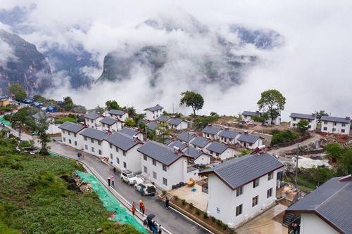 四川涼山彝族自治州布拖縣阿布洛哈村通村公路和公路旁的易地扶貧集中安置點(diǎn)(6月30日攝,無人機(jī)照片)。新華社記者 江宏景 攝