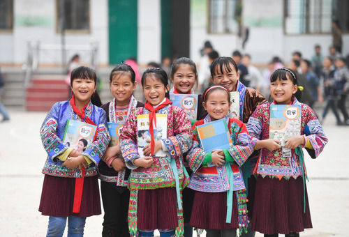 這是廣西融水苗族自治縣白云鄉(xiāng)中心校紅瑤女童班的各族女童(2017年11月29日攝)。1988年,廣西融水苗族自治縣在白云鄉(xiāng)創(chuàng)辦了紅瑤女童班,女童班實(shí)行寄宿制,并免交一切費(fèi)用,有效提高了紅瑤女童的入學(xué)率和鞏固率。新華社記者 黃孝邦 攝
