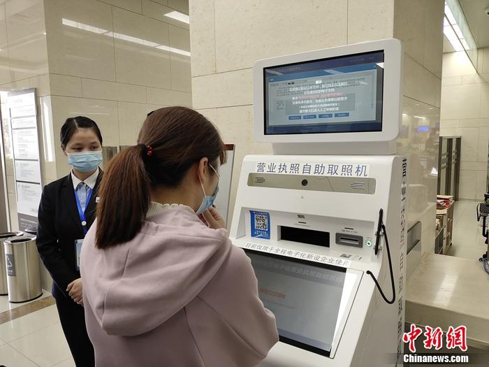 市民正在操作營業(yè)執(zhí)照自助取照機。中新網(wǎng)記者 張旭 攝