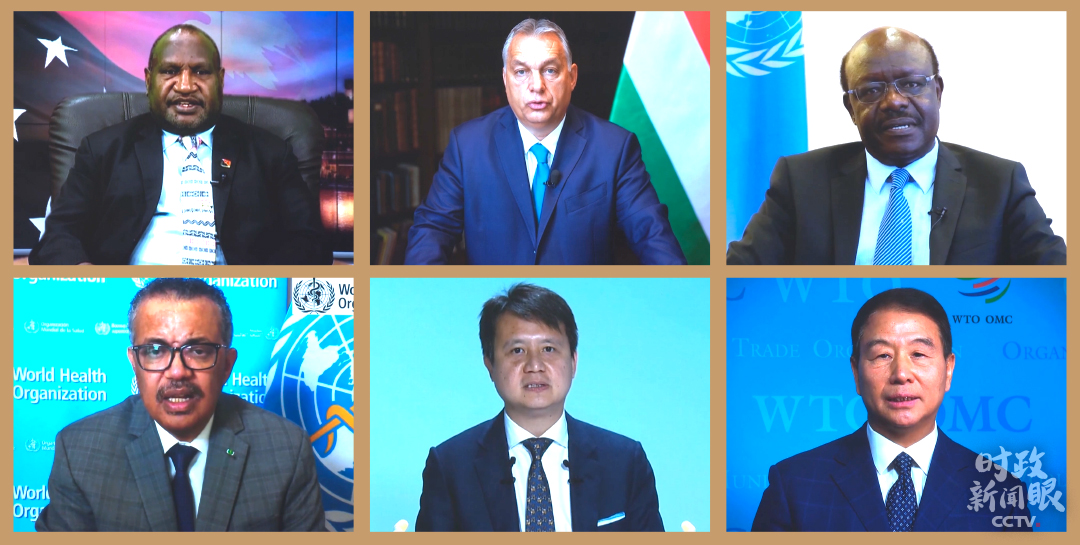 △巴布亞新幾內亞總理馬拉佩、匈牙利總理歐爾班、聯合國貿易和發展會議秘書長基圖伊、世衛組織總干事譚德塞、世界知識產權總干事鄧鴻鑫、世貿組織副總干事易小準發表視頻致辭。