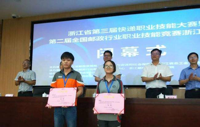 △李慶恒在浙江省第三屆快遞職業技能競賽中,獲得快遞員項目的第一名。