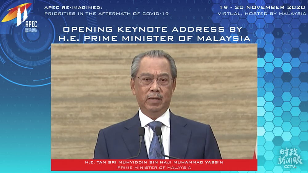 △馬來西亞總理穆希丁當天在APEC工商領導人對話會開幕式上致辭。(來源于APEC官網)