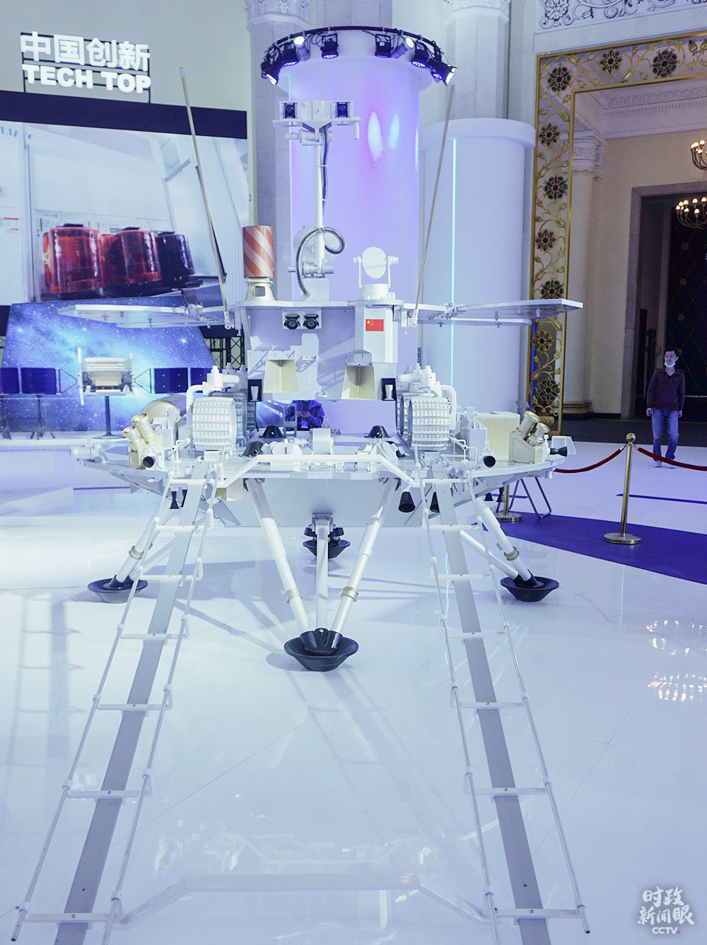 △“天問一號”巡視器(火星車)等比例模型在中國上海2020全球技術轉移大會展出。